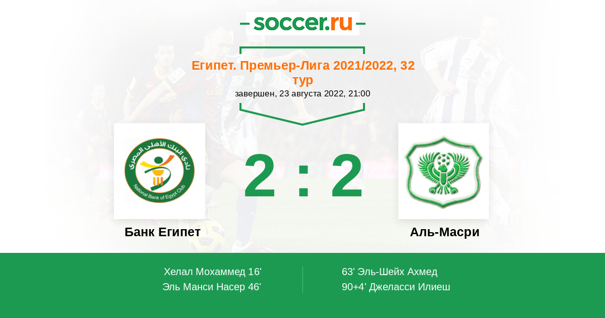 16' (1:0) Хелал Мохаммед (25) (Эль Манси Насер (9))