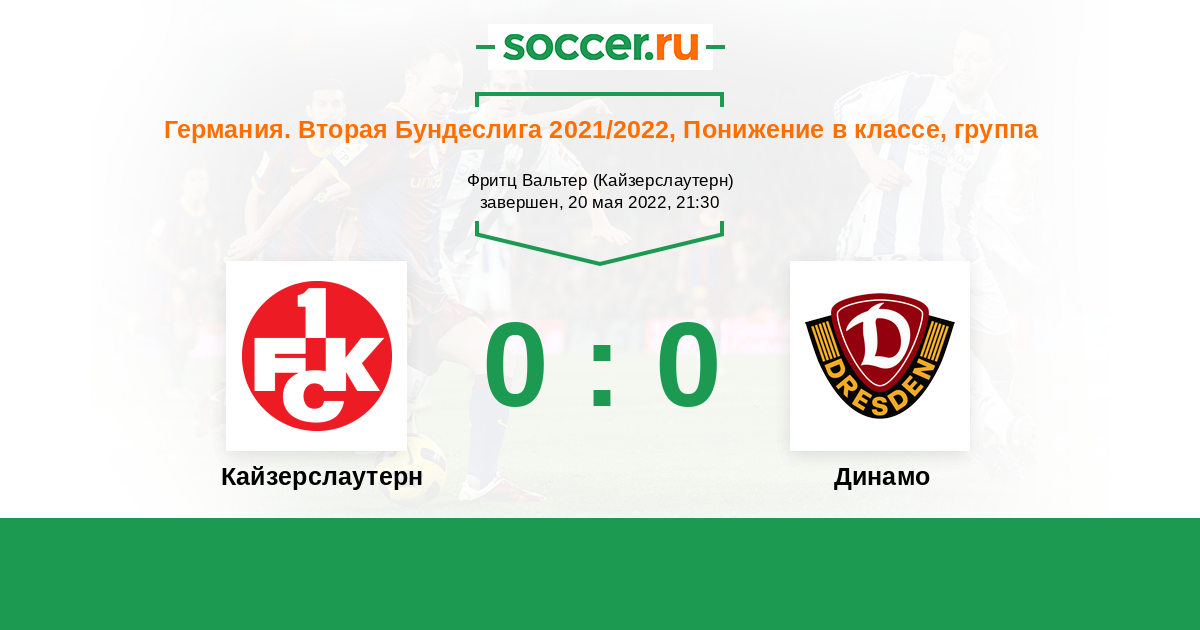 Протокол матча Кайзерслаутерн против Динамо