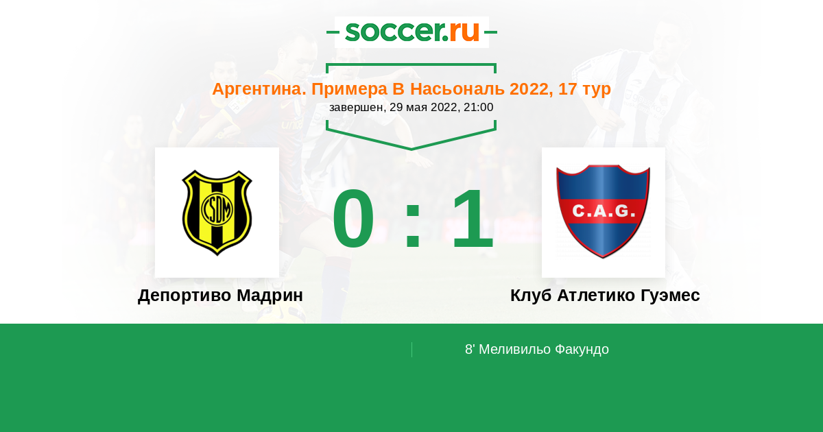 Протокол матча Депортиво Мадрин против Атлетико Гуэмес