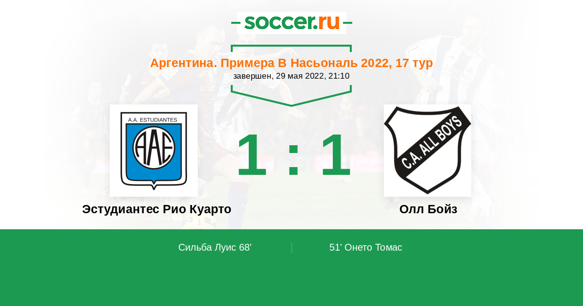 Протокол матча Эстудиантес Рио Куарто против Олл Бойз