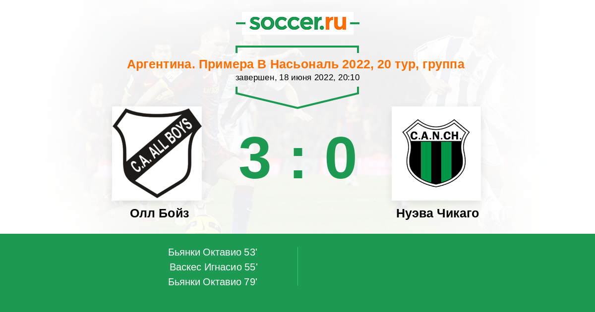 Протокол матча Олл Бойз против Нуэва Чикаго