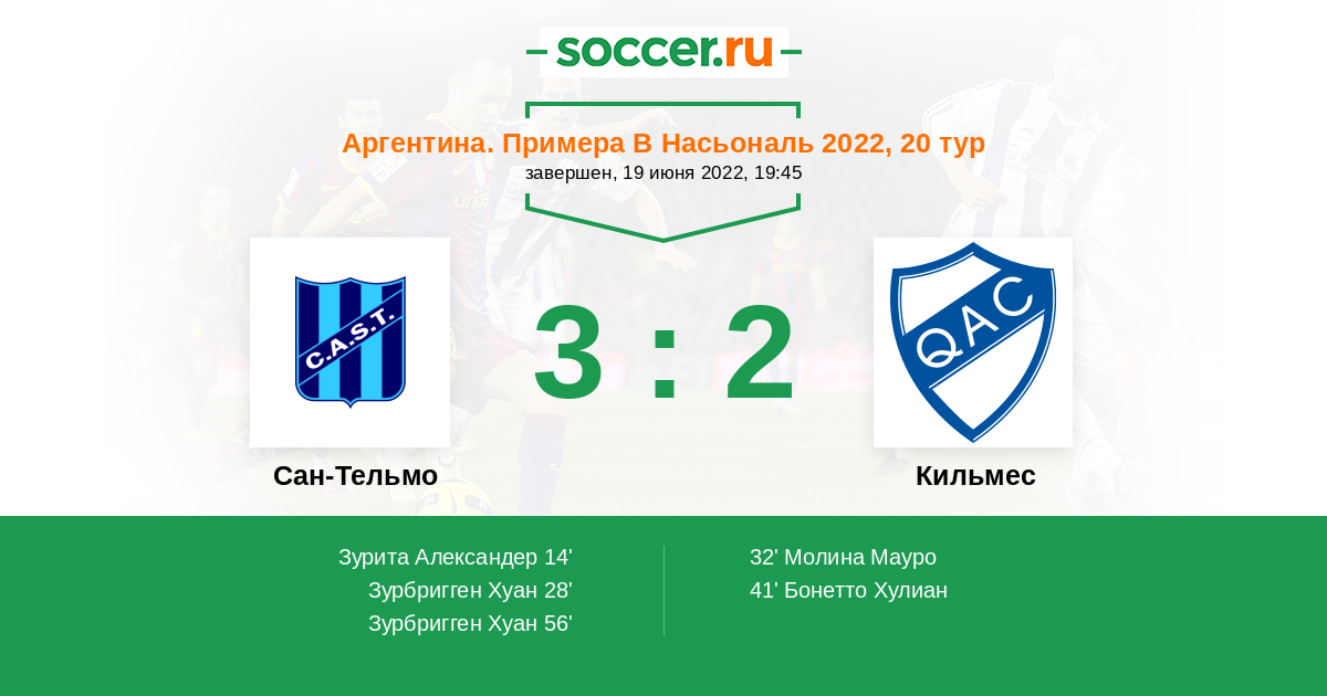 Протокол матча Сан-Тельмо против Кильмес