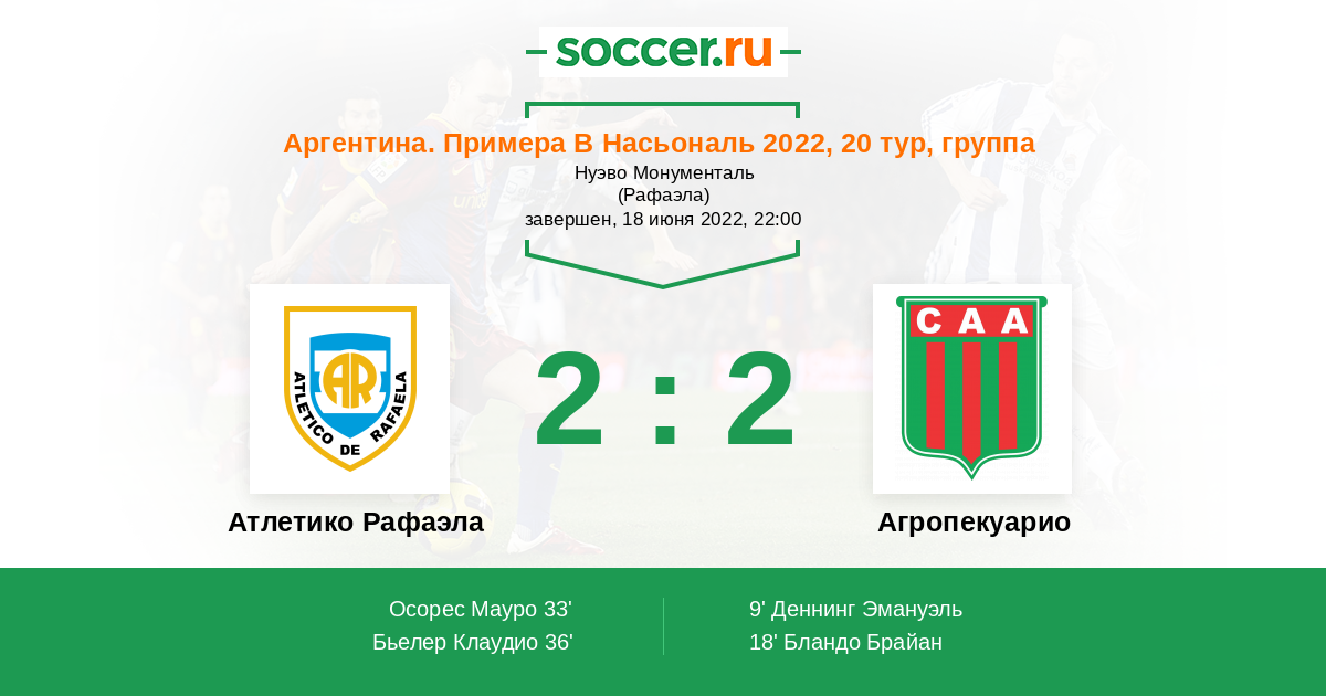 Протокол матча Атлетико Рафаэла против Агропекуарио