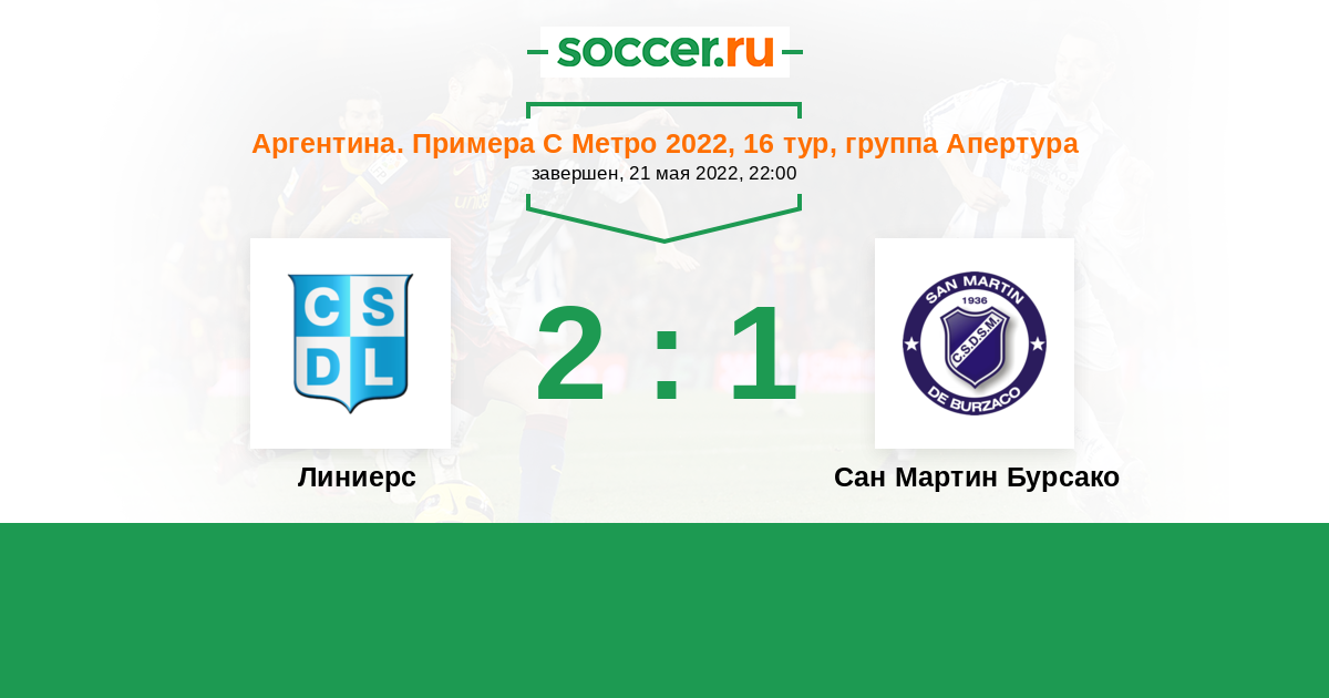 Аргентина. Примера С Метро 26.09.2022 Сан Мартин Бурсако Логотип футбольный клуб Сан Мартин Бурсако 0:1 Логотип футбольный клуб Линиерс (Ла-Матанса) Линиерс