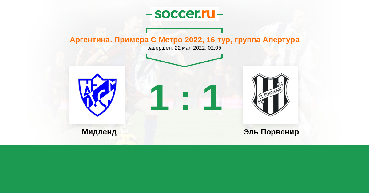 Аргентина. Примера С Метро 26.09.2022 Эль Порвенир Логотип футбольный клуб Эль Порвенир (Буэнос-Айрес) 2:0 Логотип футбольный клуб Мидленд (Либертад) Мидленд
