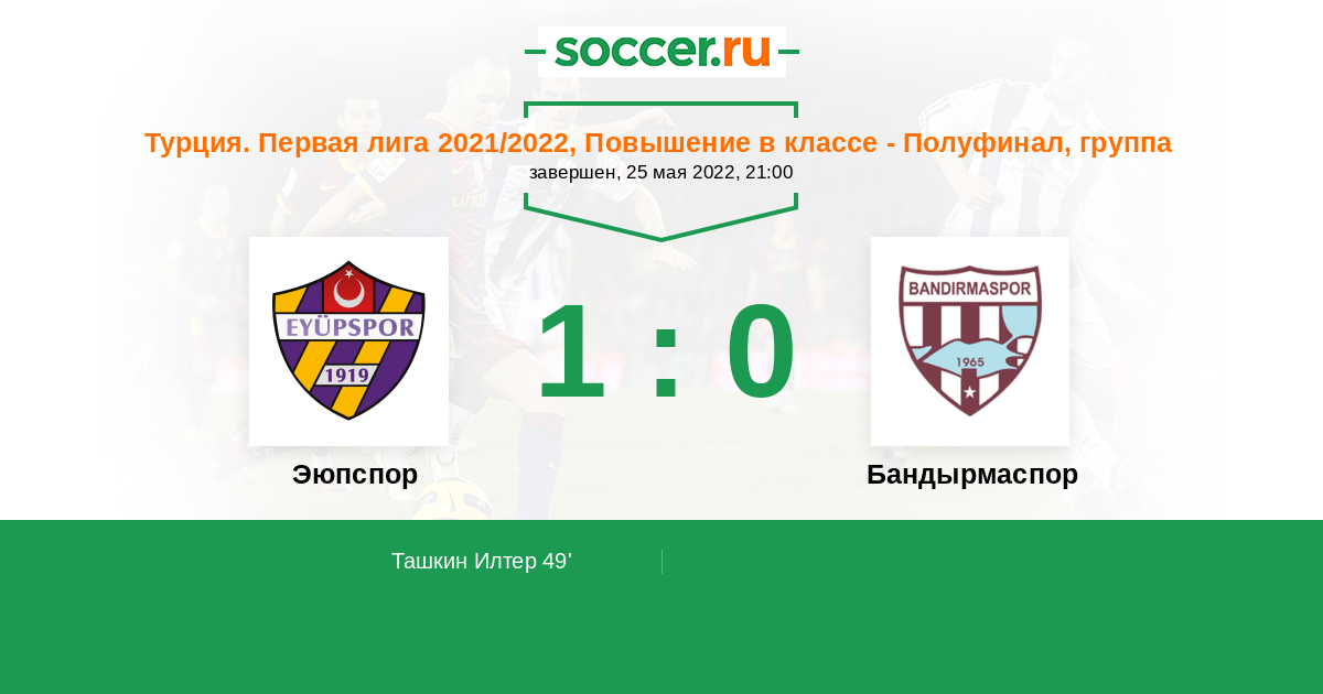 Протокол матча Эюпспор против Бандырмаспор