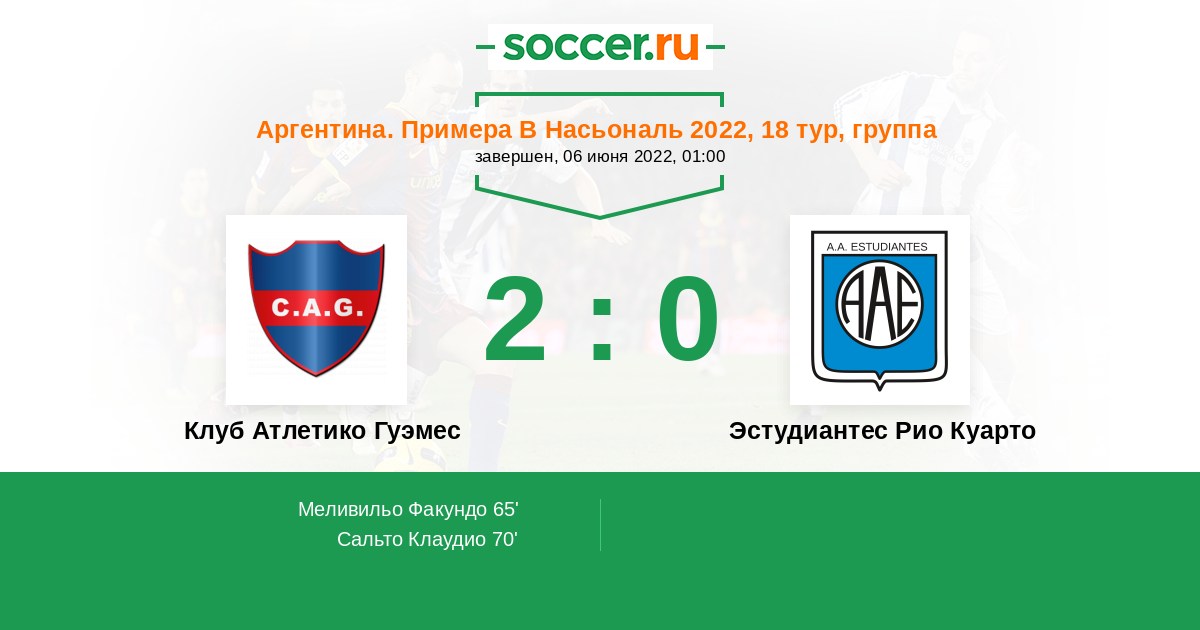 Протокол матча Атлетико Гуэмес против Эстудиантес Рио Куарто