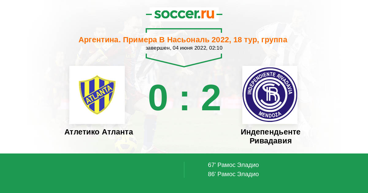 Протокол матча Атлетико Атланта против Индепендьенте Ривадавия