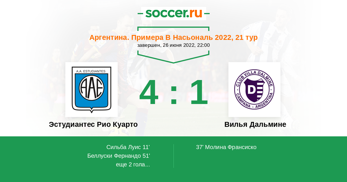 Протокол матча Эстудиантес Рио Куарто против Вилья Дальмине