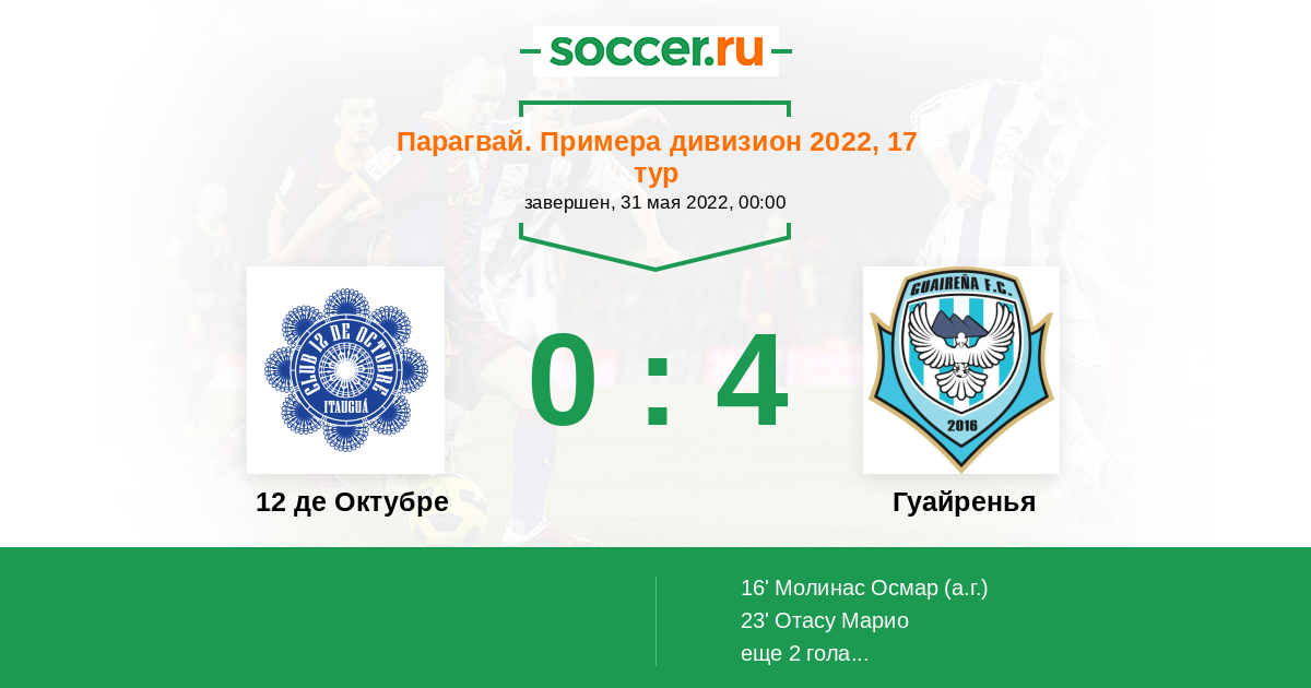 Протокол матча 12 де Октубре против Гуайренья
