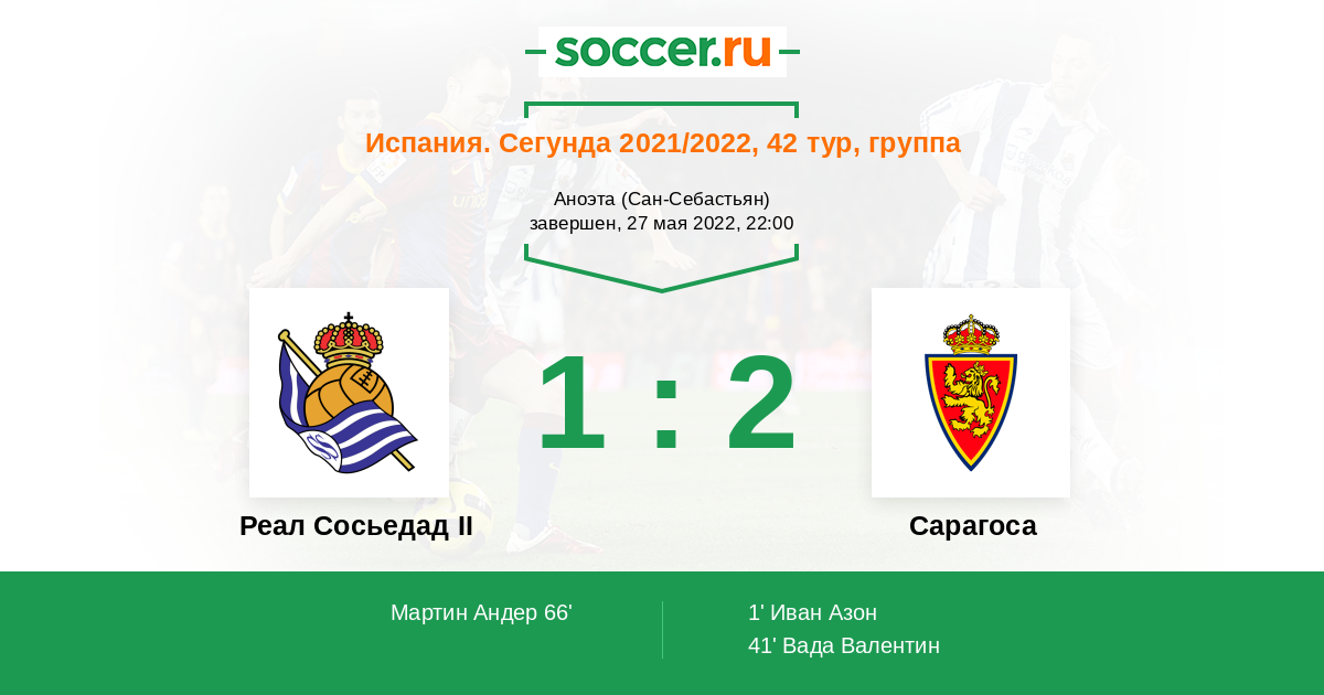 Протокол матча Реал Сосьедад II против Сарагоса