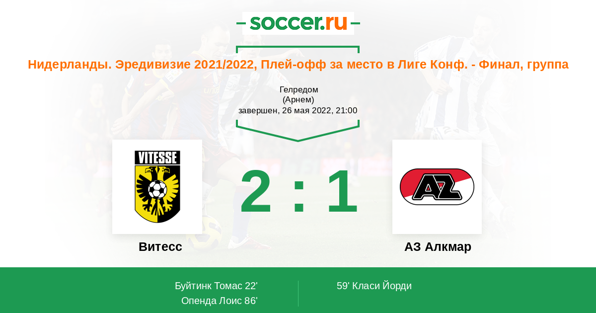 Протокол матча Витесс против АЗ Алкмар