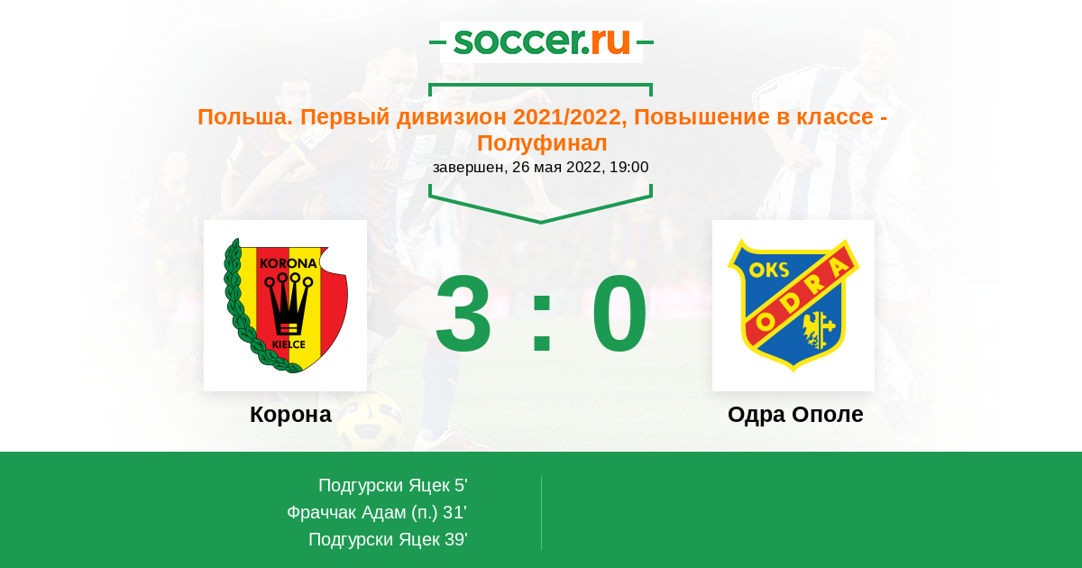 Протокол матча Корона против Одра Ополе
