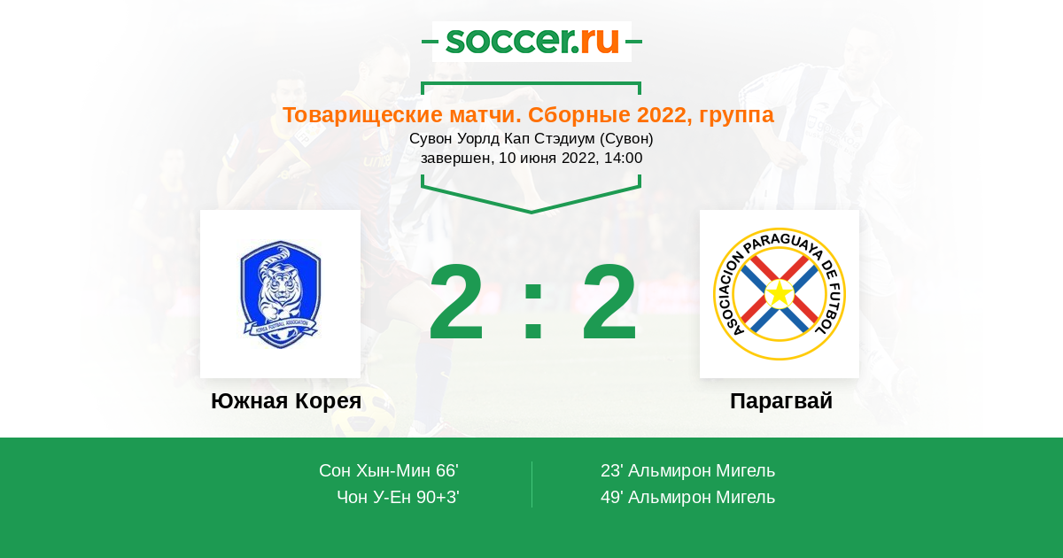 Протокол матча Южная Корея против Парагвай