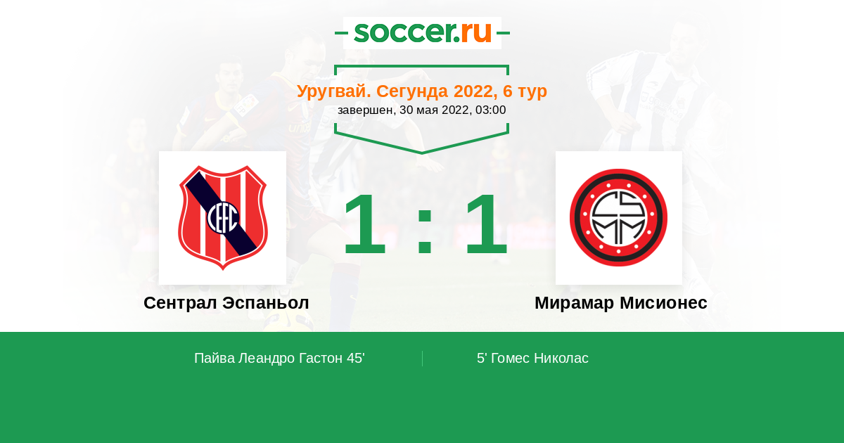 Протокол матча Сентрал Эспаньол против Мирамар Мисионес