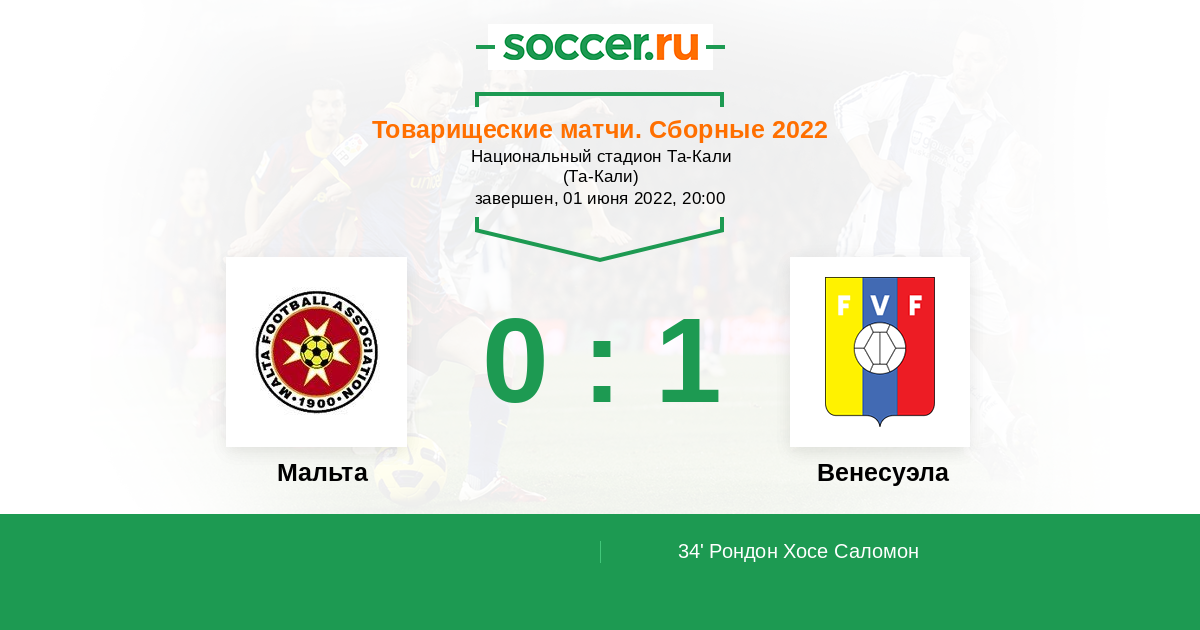 34' (0:1) Рондон Хосе Саломон (23) (Сотельдо Йеферсон (10))