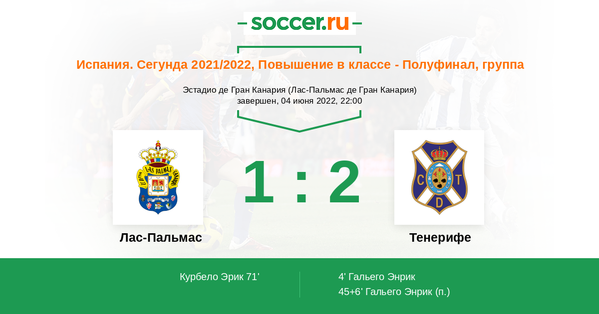 Я думаю что в этом противостоянии более чем явного фаворита на победу нет . Но у команды хозяев поля Лас - Пальмас нет другого варианта как одержать победу на своём поле и добыть путёвку в высший дивизион . Ничья или победа хозяев поля .