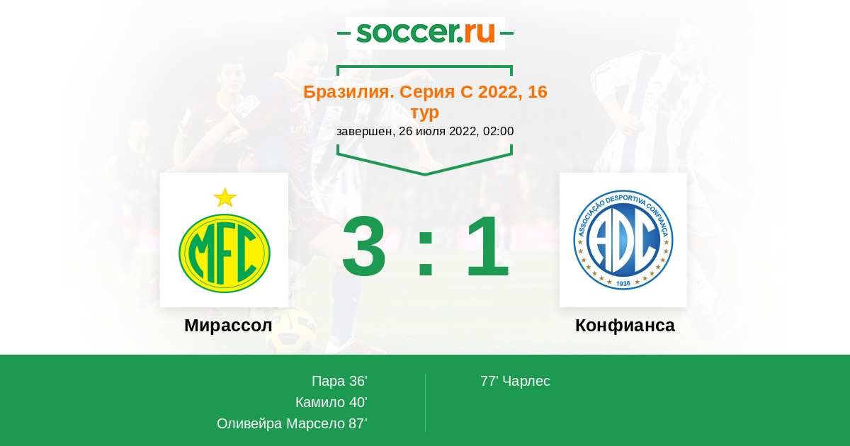 Протокол матча Мирассол против Конфианса