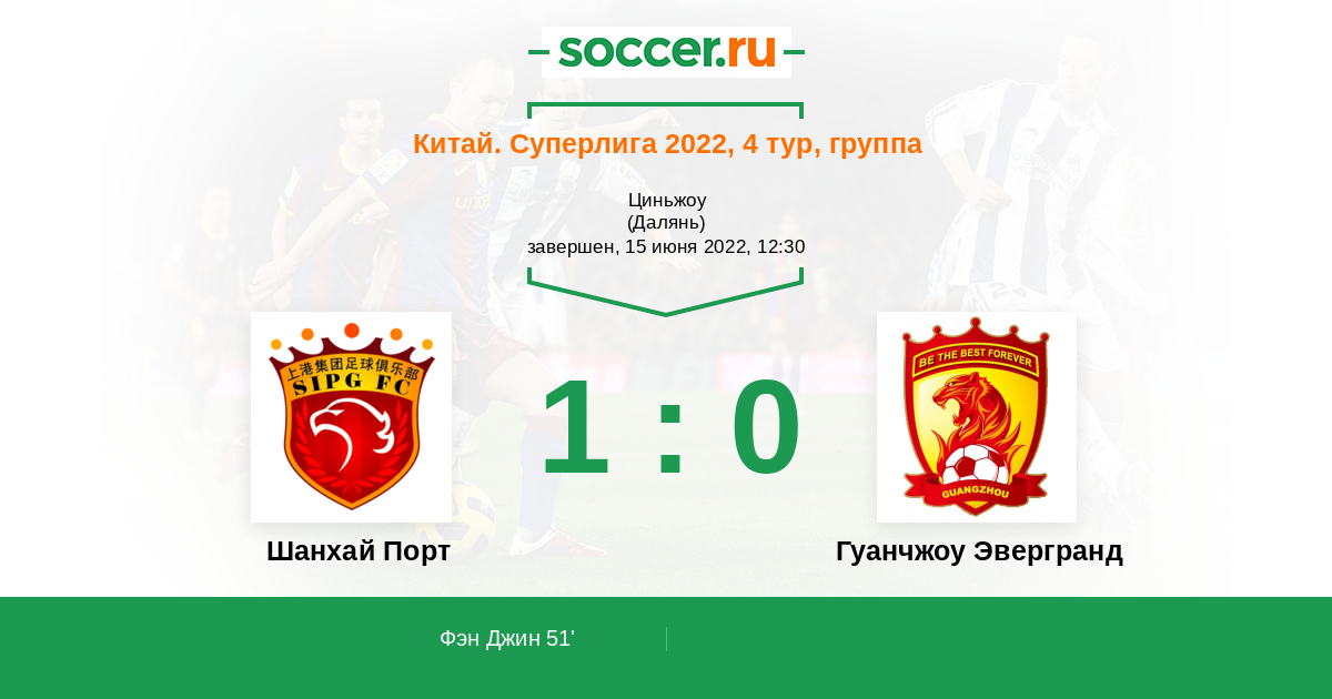 Протокол матча Шанхай Порт против Гуанчжоу Эвергранд