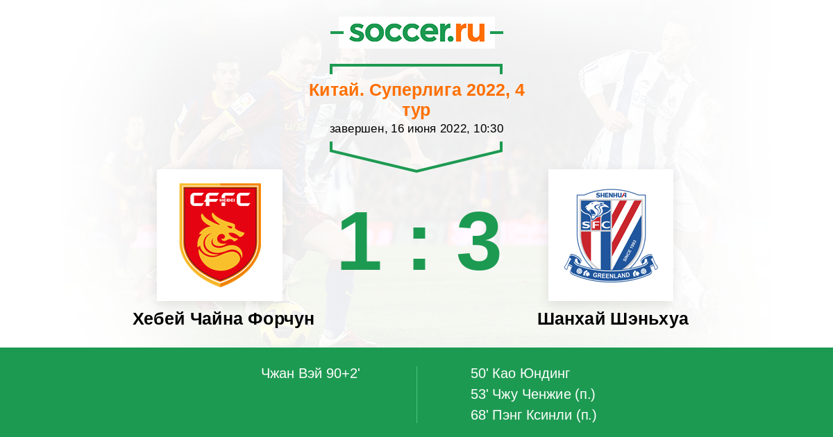 Протокол матча Хебей Чайна Форчун против Шанхай Шэньхуа
