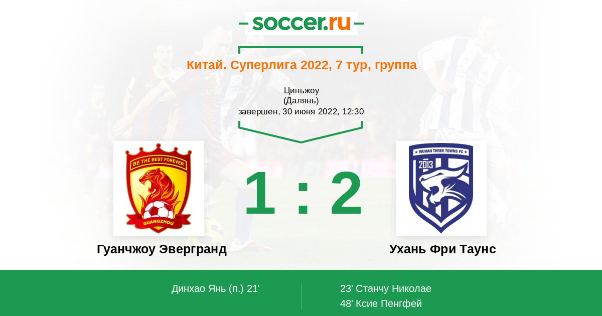 Протокол матча Гуанчжоу Эвергранд против Ухань Фри Таунс