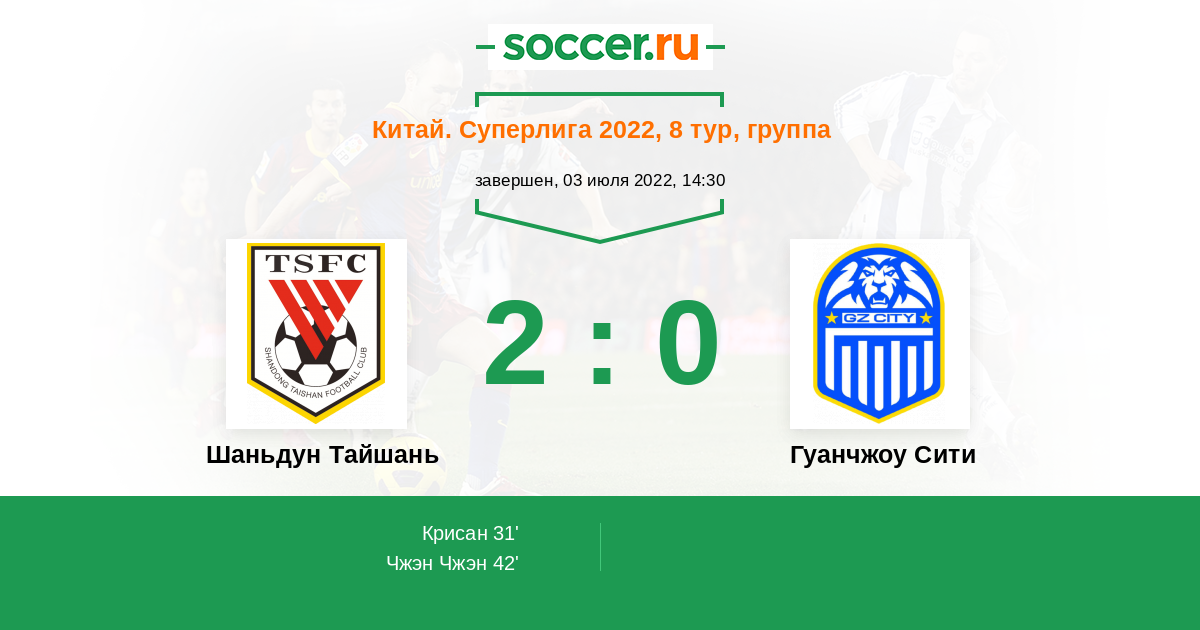 Протокол матча Шаньдун Тайшань против Гуанчжоу Сити