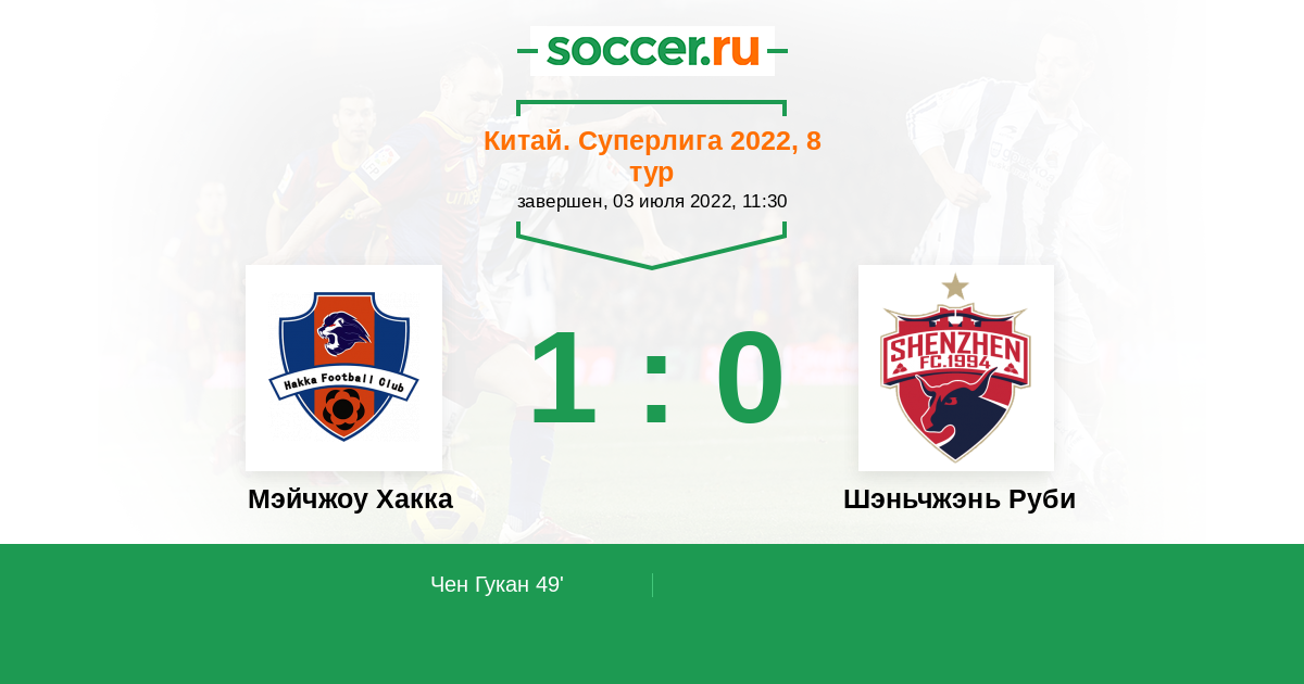 Протокол матча Мэйчжоу Хакка против Шэньчжэнь Руби