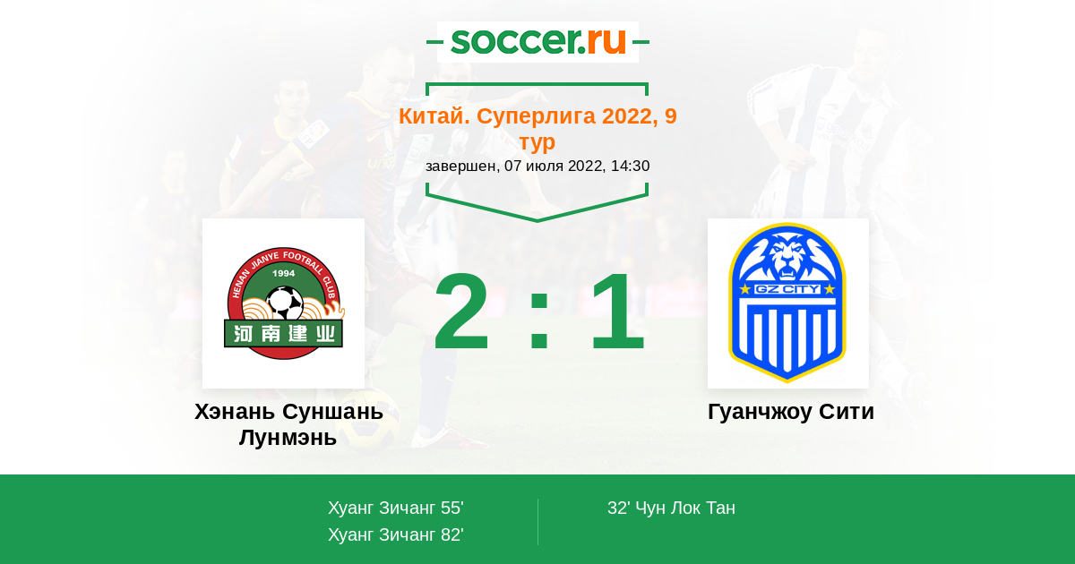 Протокол матча Хэнань Суншань Лунмэнь против Гуанчжоу Сити