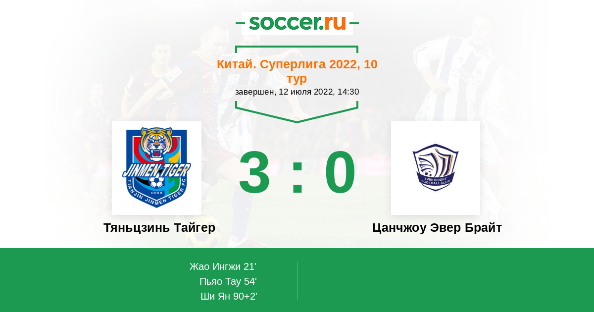 Протокол матча Тяньцзинь Тайгер против Цанчжоу Эвер Брайт