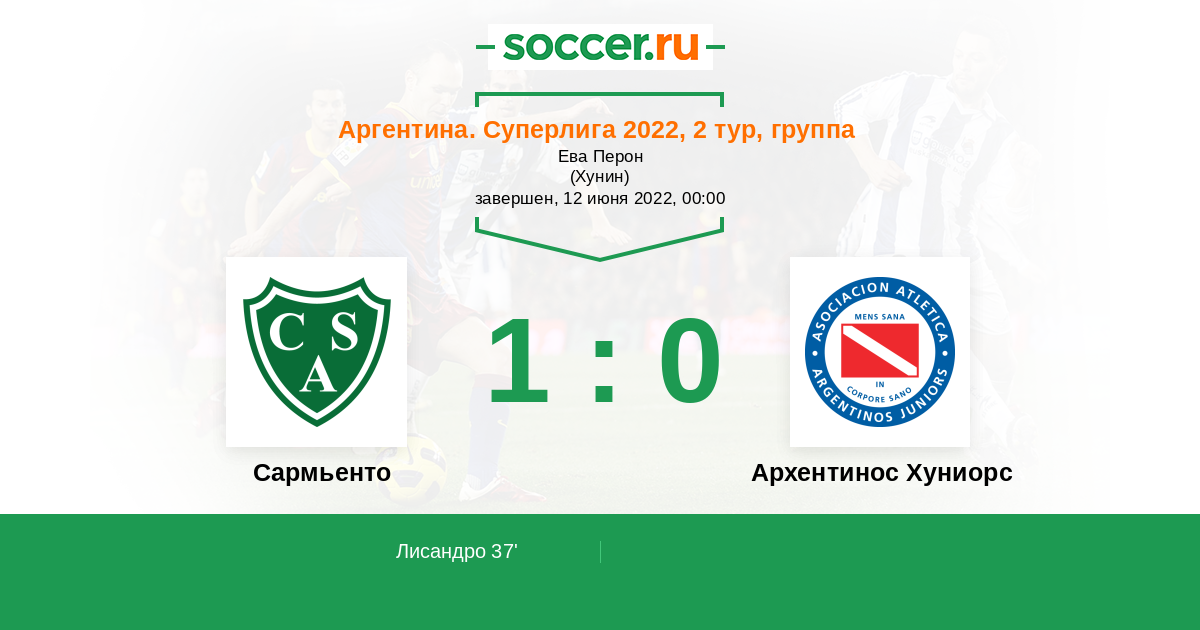 Протокол матча Сармьенто против Архентинос Хуниорс