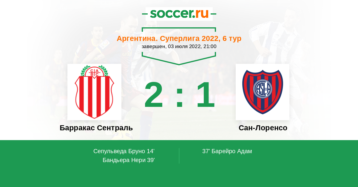 Протокол матча Барракас Сентраль против Сан-Лоренсо