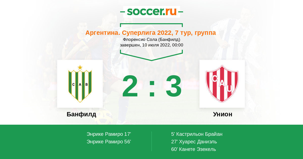 Протокол матча Банфилд против Унион