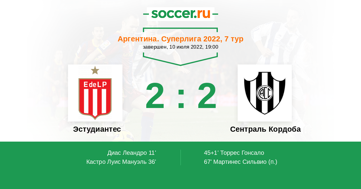 Протокол матча Эстудиантес против Сентраль Кордоба