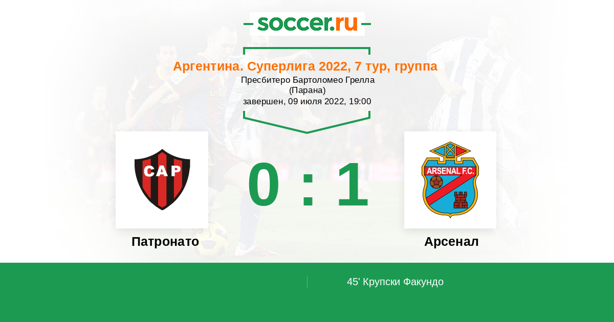 45' (0:1) Крупски Факундо (10) (Ломонако Себастьян (27))