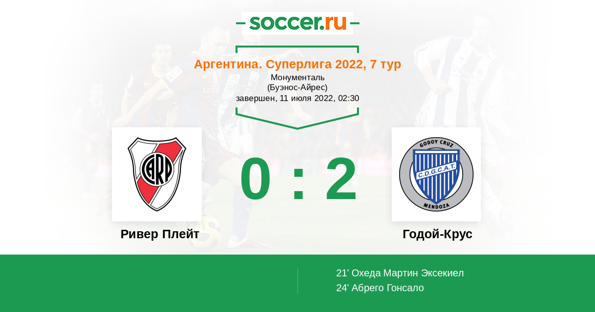 Протокол матча Ривер Плейт против Годой-Крус