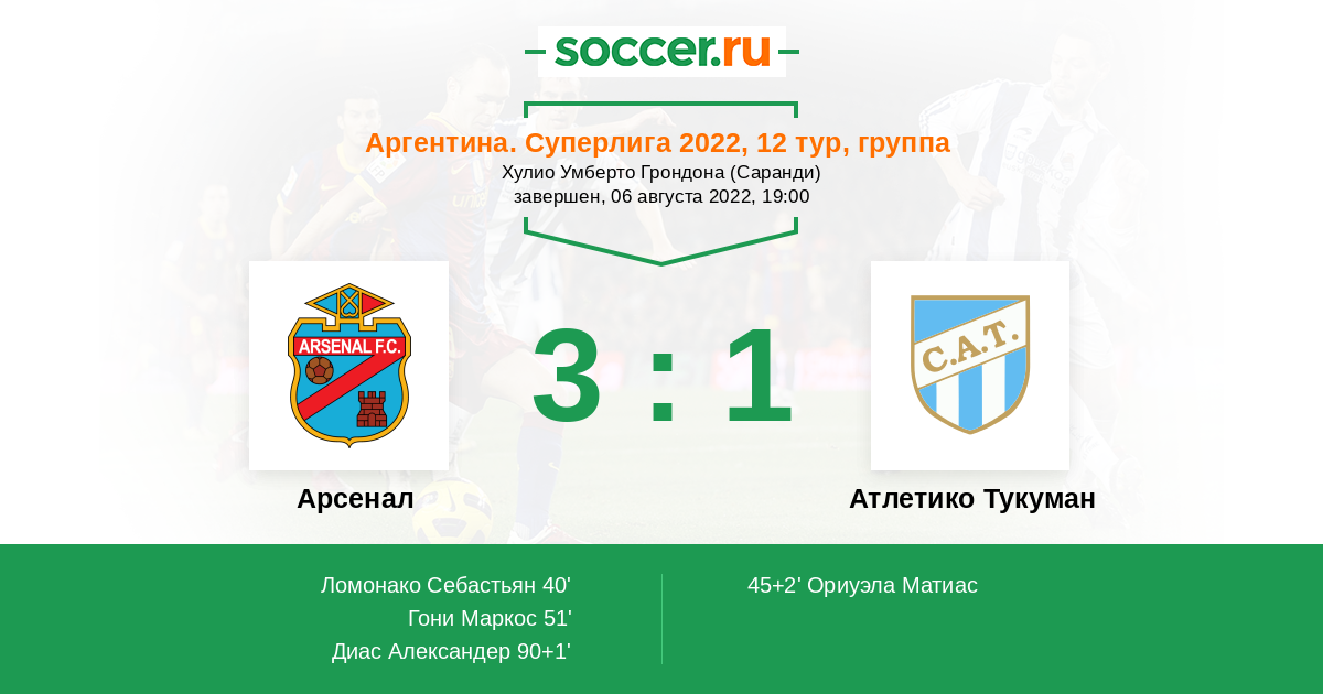 Протокол матча Арсенал против Атлетико Тукуман