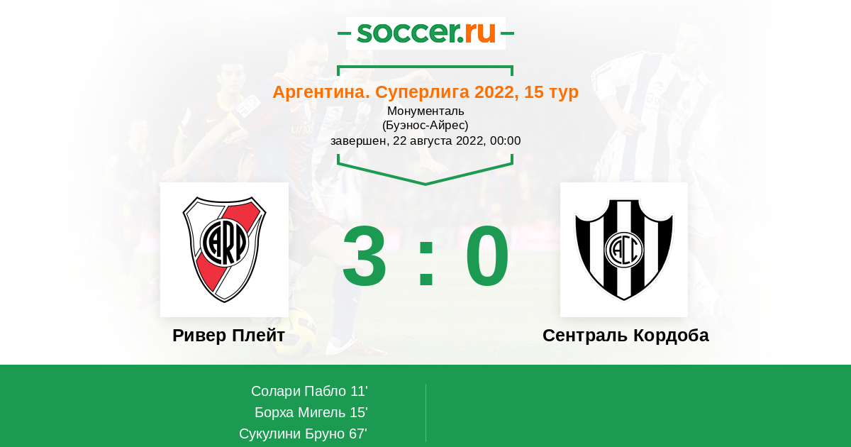 Протокол матча Ривер Плейт против Сентраль Кордоба