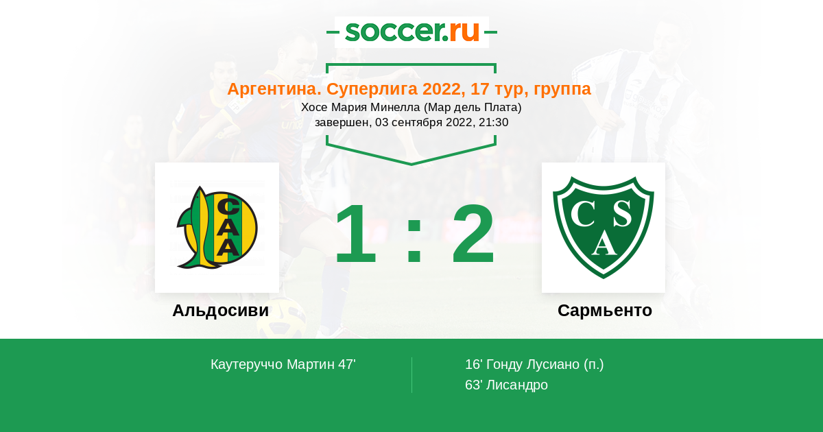 Протокол матча Альдосиви против Сармьенто