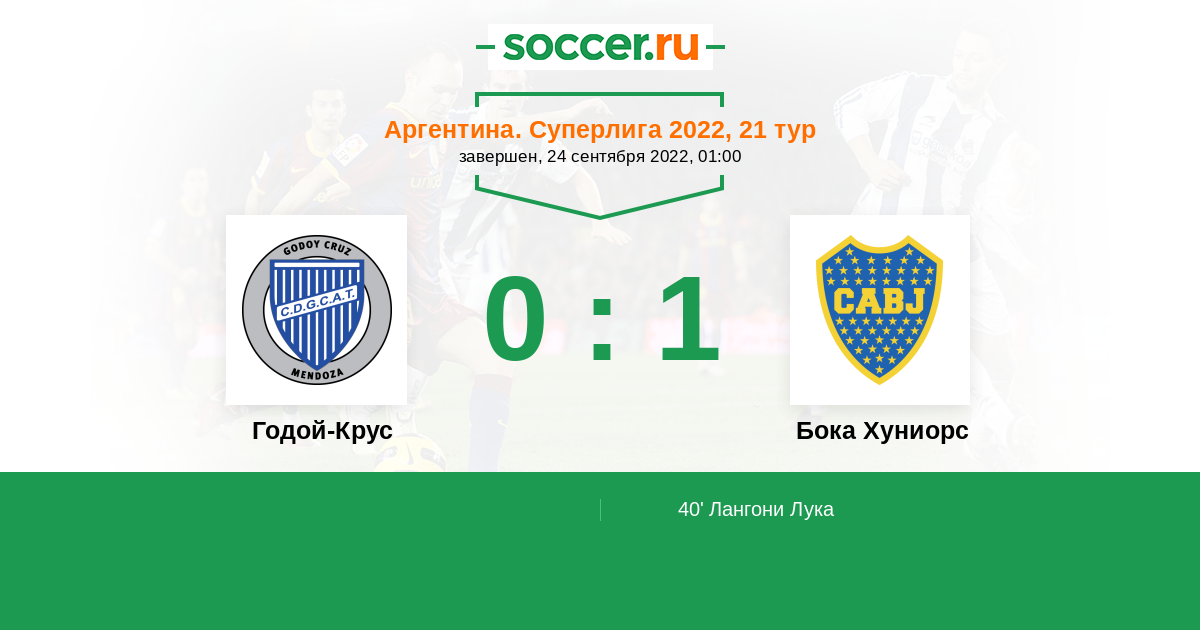 Протокол матча Годой-Крус против Бока Хуниорс
