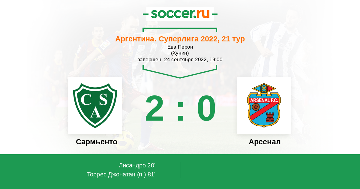 Протокол матча Сармьенто против Арсенал