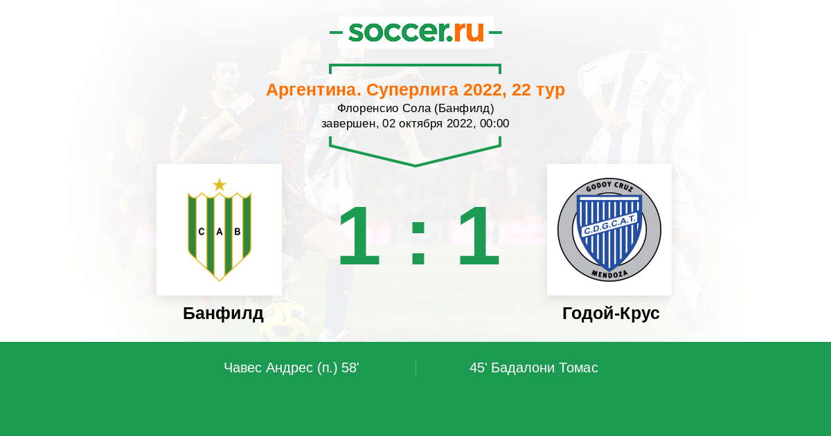 Протокол матча Банфилд против Годой-Крус