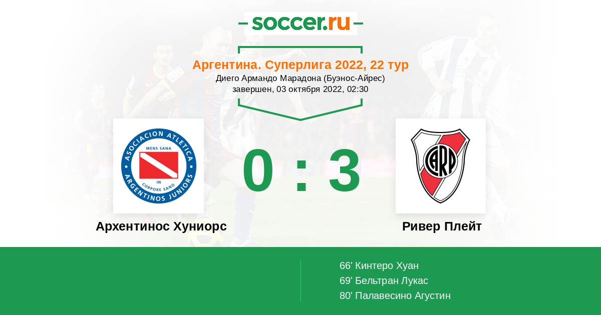 Протокол матча Архентинос Хуниорс против Ривер Плейт
