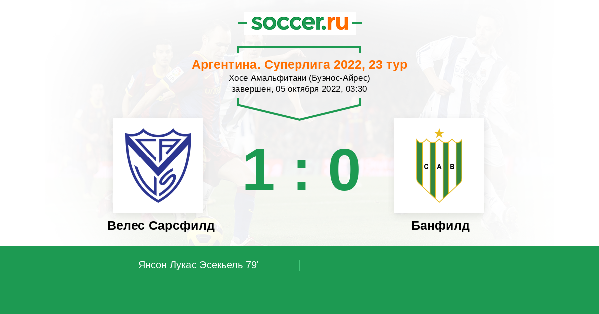 Протокол матча Велес Сарсфилд против Банфилд