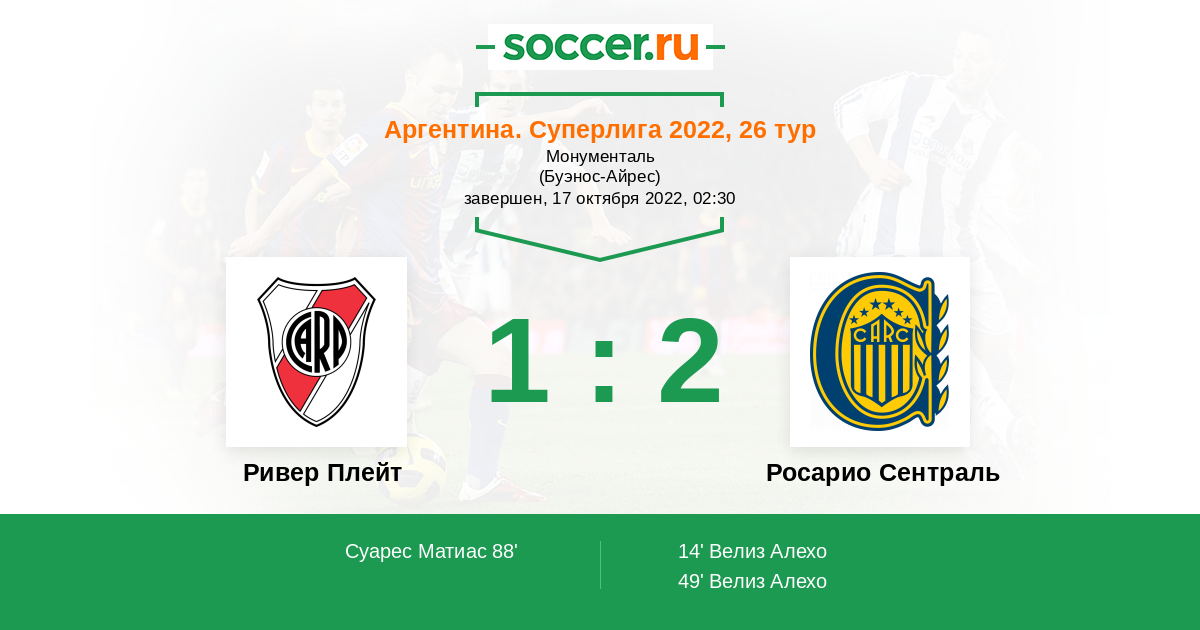 Протокол матча Ривер Плейт против Росарио Сентраль