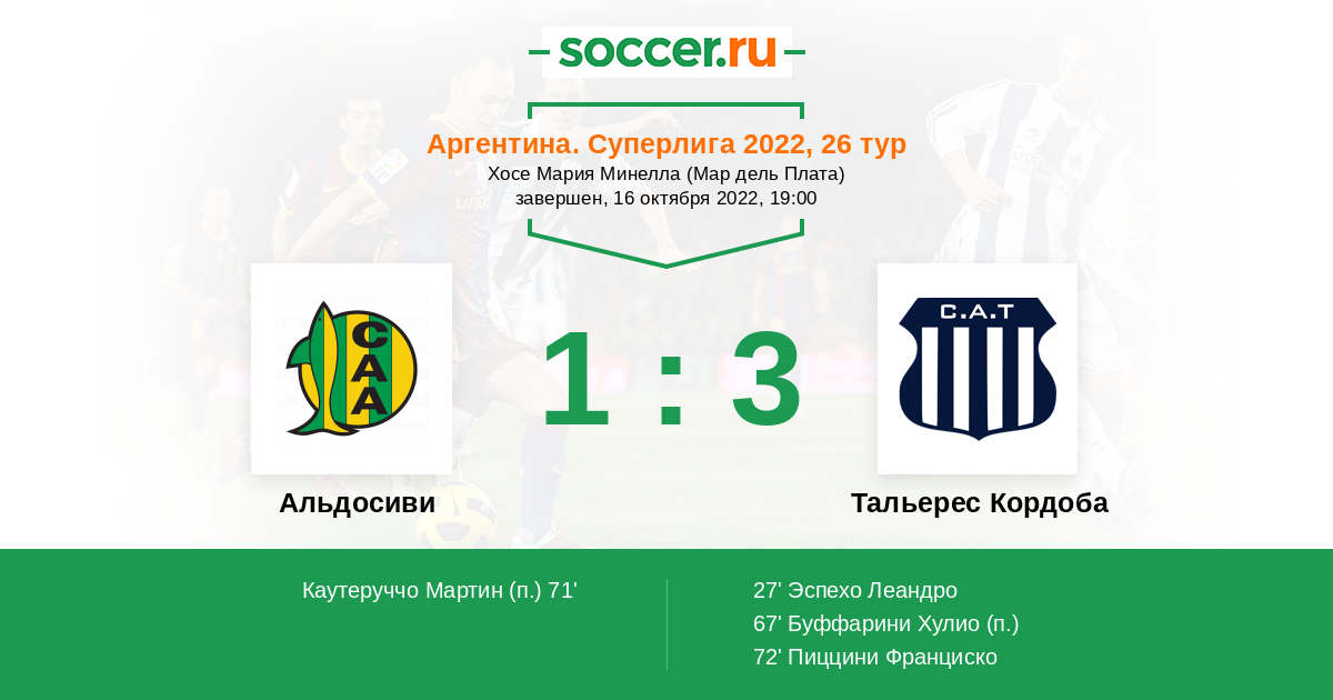 Протокол матча Альдосиви против Тальерес Кордоба