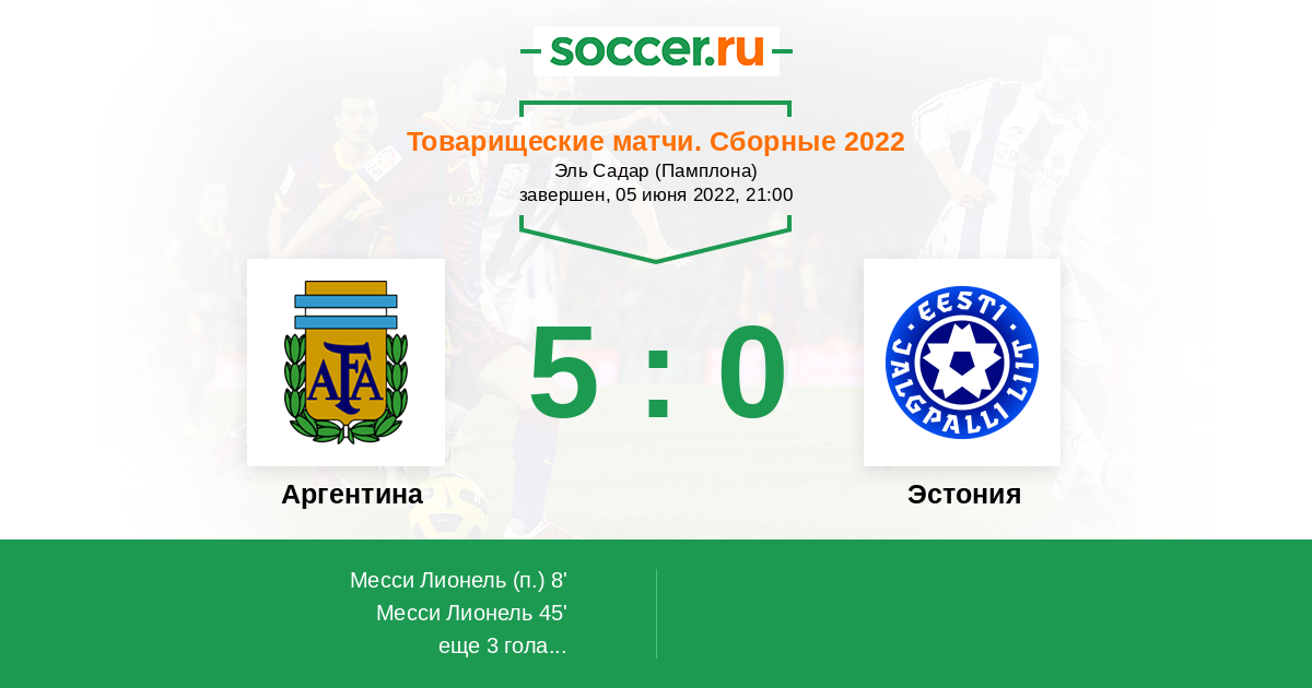 Протокол матча Аргентина против Эстония