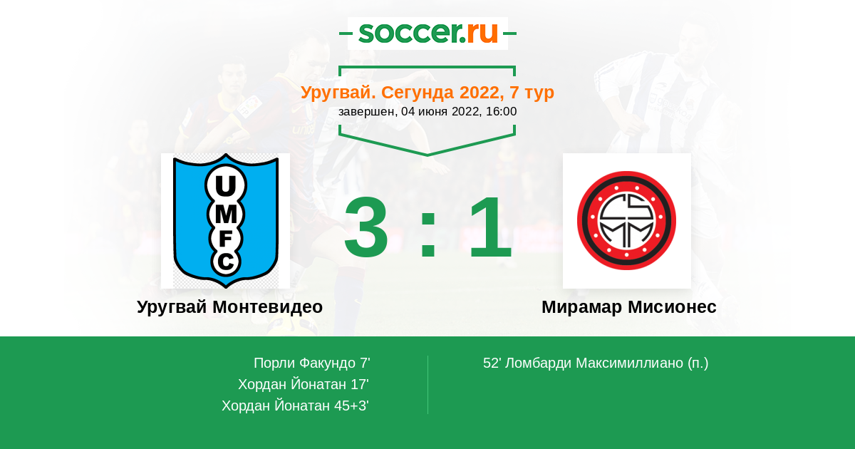 Протокол матча Уругвай Монтевидео против Мирамар Мисионес