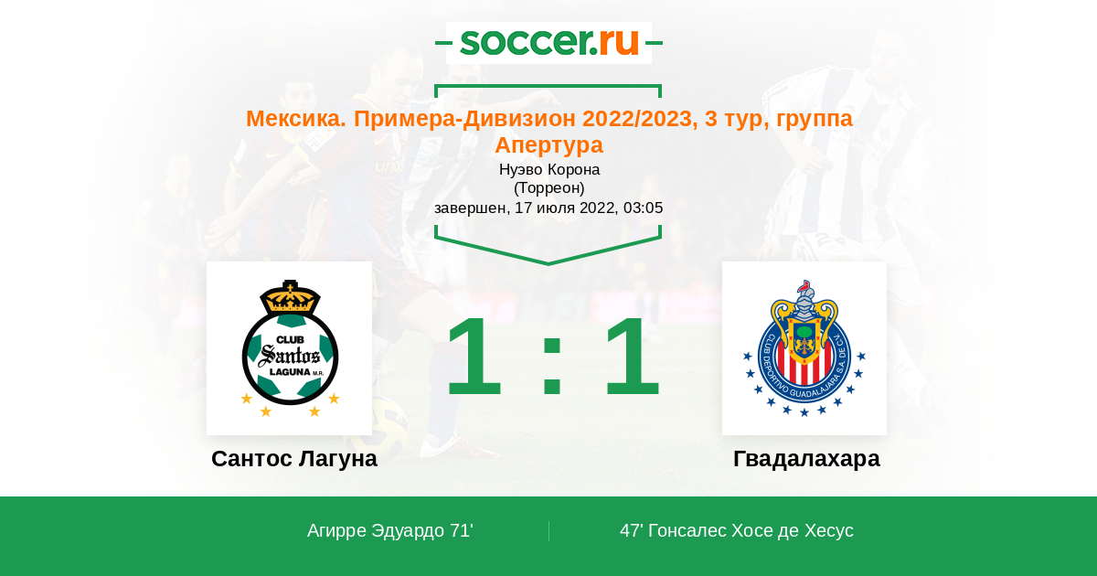Протокол матча Сантос Лагуна против Гвадалахара