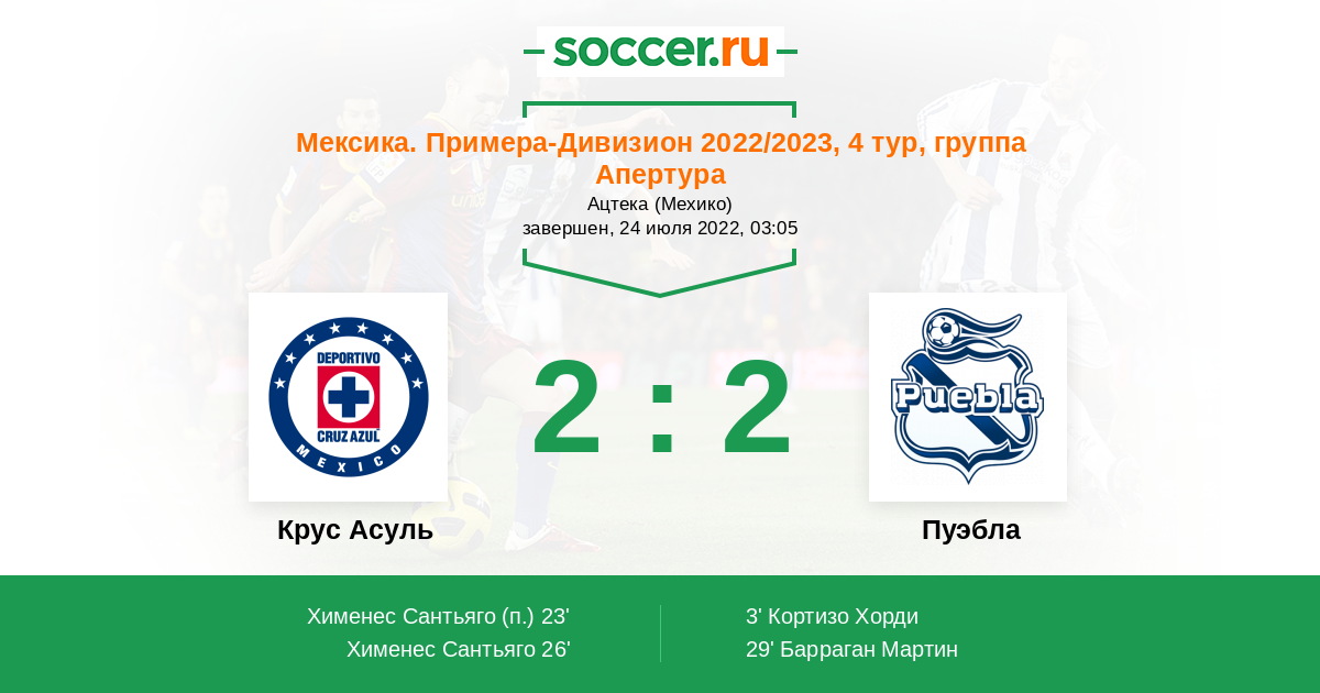 Протокол матча Крус Асуль против Пуэбла
