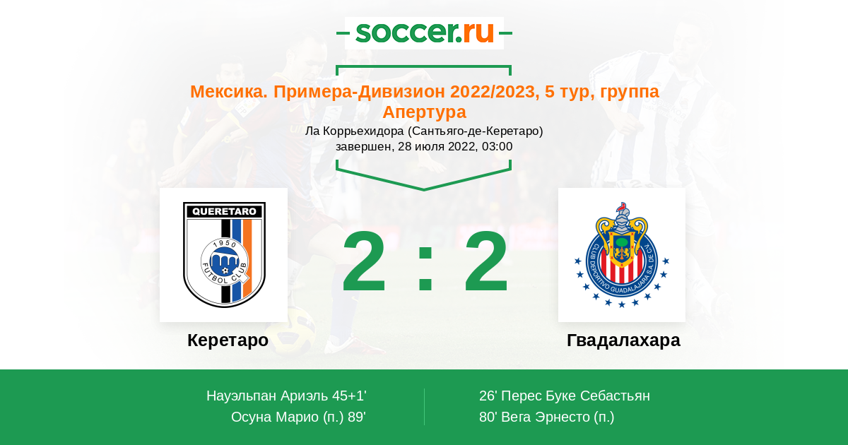Протокол матча Керетаро против Гвадалахара